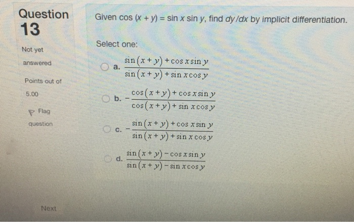 Question 13 On Given Cos X Given Cos X Y Sin X Chegg Com